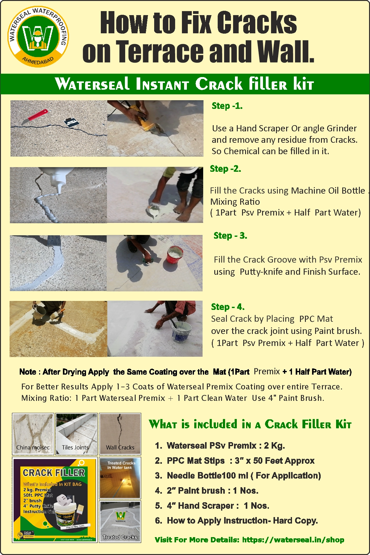 If you are looking for a practical way to repair terrace cracks on your own, the steps below will help you understand how to fix terrace cracks yourself. This is a DIY process and may take some time. It also requires basic tools and the right materials, such as an all-in-one Waterseal Instant Crack Filler Kit.